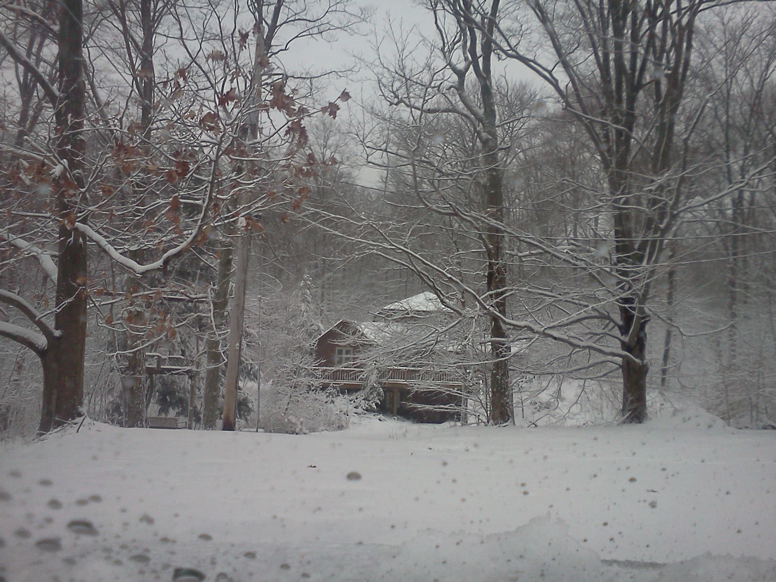 It looks like it is going to be a white Christmas this year in Chardon, Ohio. Here at Grandma and Grandpa's house the snow started falling this morning and has now covered everything. It was snowing so hard that when we went out the car windshield was getting covered with snow as fast as we could clear it off.